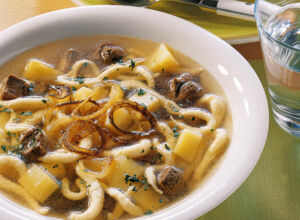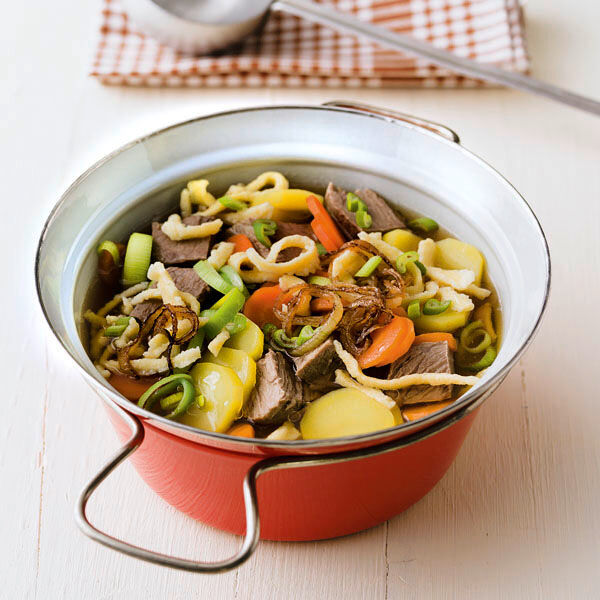 Juli 2020 Suppen und Eintöpfe. Was sie auszeichnet ist die ungewöhnliche Kombination von zwei Stärken. Traditionell kommen in den Gaisburger Marsch Eier und Rindfleisch hinein außerdem wird mit Rinderfond gekocht.